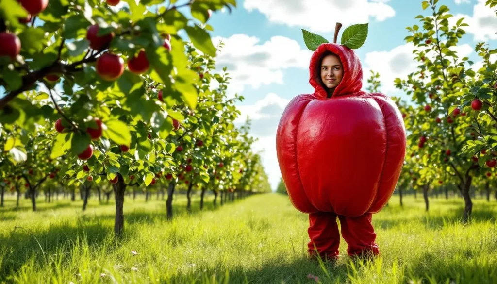 La disponibilidad de tallas garantiza que no haya límites en quién puede transformarse en una deliciosa manzana. Es una oportunidad fantástica para coordinar disfraces familiares o grupales con un mismo diseño base.