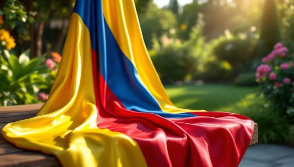La tela Bandera Satinada de Colombia es un textil excepcional que permite llevar el espíritu patrio a cualquier rincón. Sus vibrantes franjas amarillo, azul y rojo capturan la esencia de la nación.